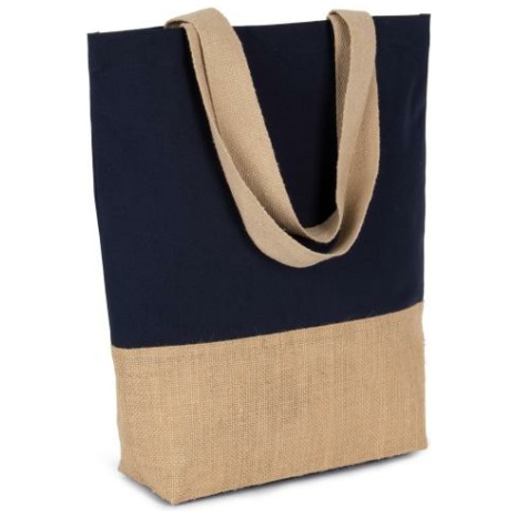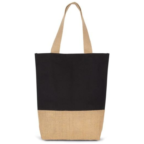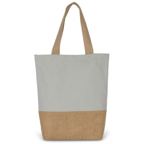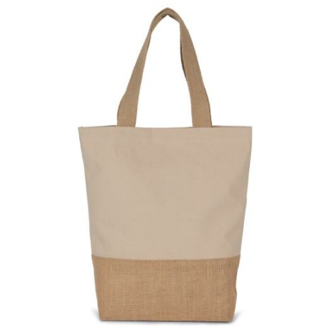 Shopper van katoen en verlijmde jutedraad. Tas in stevige jute en zacht katoen. Ideaal voor personalisatie.