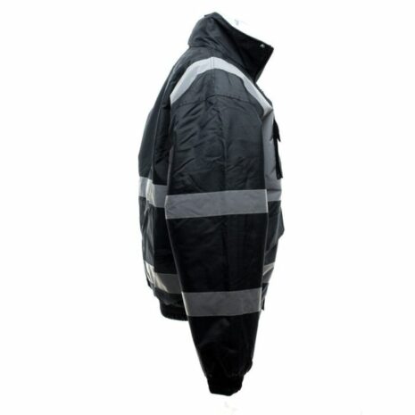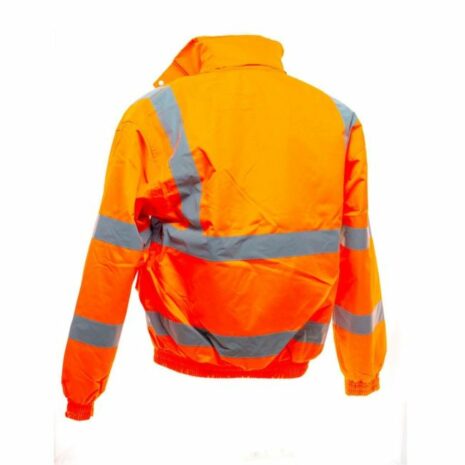Signalisatie klassiek bomberjack Gewatteerde vulling Elastische tailleband en mouwuiteinden In de kraag verborgen capuchon 100% polyester. 300D PU coating. Gewatteerde diamantvormige nylonvoering gevuld met 190g polyesterwatten. Sterke rits met stormoverslag en drukknopen. 2 buitenzakken met klep. Elastiek in de manchetten en zoom in bijhorende kleur. Opgelegde binnenzak. Volledig doorstikte en gesealde zomen voor een perfecte waterdichtheid. Opvouwbare capuchon. Conform aan EN ISO EN20471:2013 Klasse 3 normering en EN343 tegen barre weersomstandigheden: enkel Hi Vis Yellow, Hi-Vis Orange. Hi-Vis Orange ook conform aan GO/RT 3279.