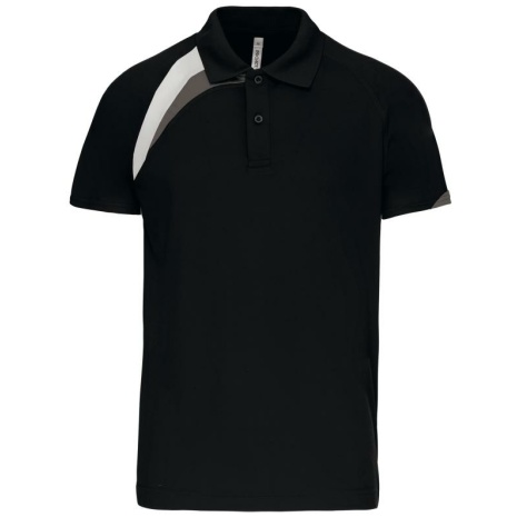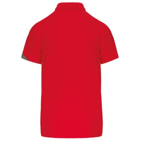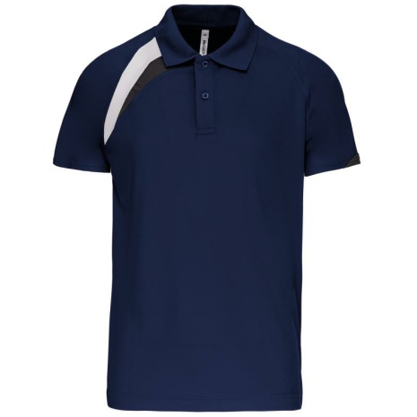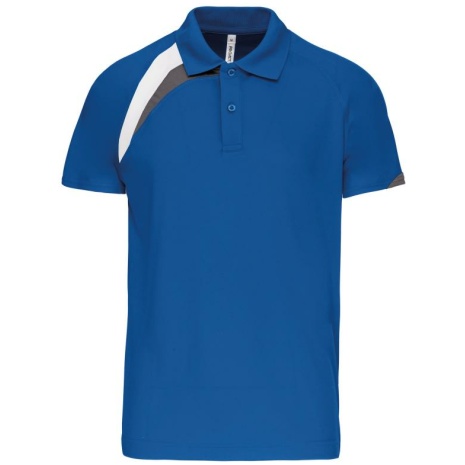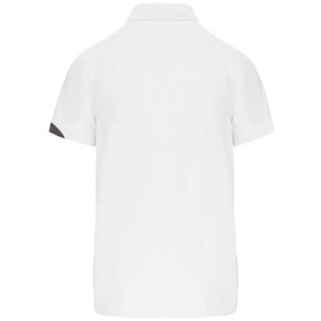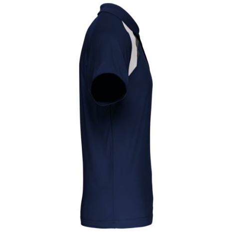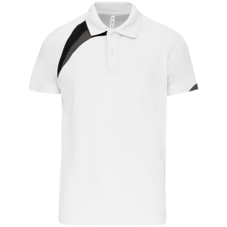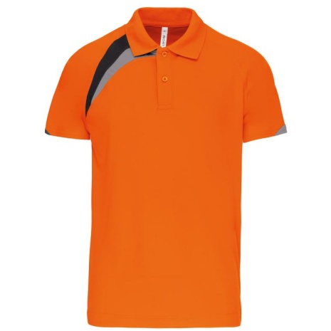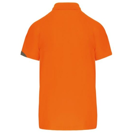 Sport polo Korte Mouwen 100% polyester: heel sterk, licht en ademend. 100% polyester. Inzetstukken in contrastkleur op de borst en mouwuiteinde. Kraag in rib 1×1. 2 toon op toon knoopjes. Afwerking met toon op toon overstiksels. Afwerking met dubbele stiksel onderaan en aan de mouwuiteinden.