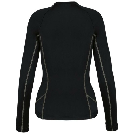 Sport Top ¼ Zip met lange mouwen voor dames 100% tricotpolyester: heel sterk. 100% polyester polytricot. Raglanmouwen. Contrasterende stiksels.