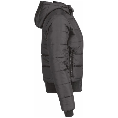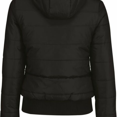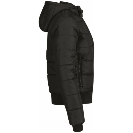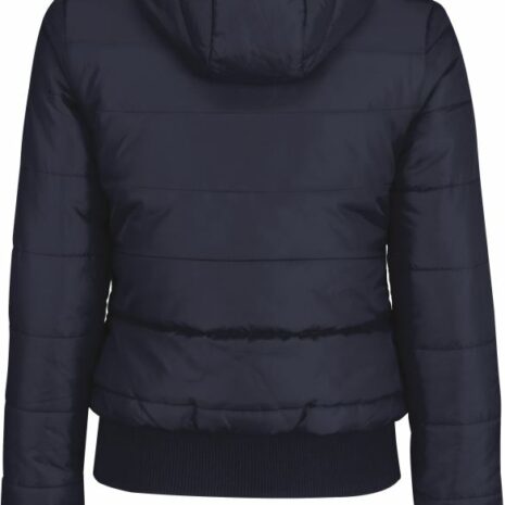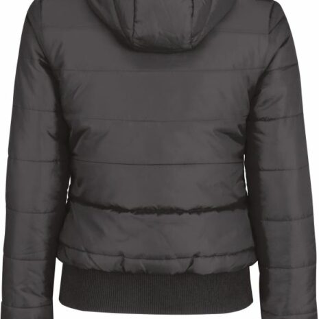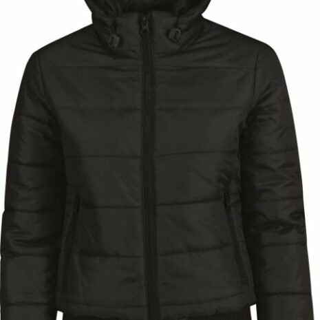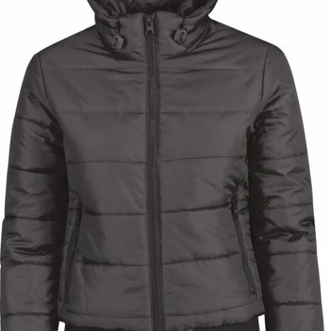 Superhood / Women ‘Donsvulling’: comfort en warmte. Acrylcoating, bestand tegen weer en wind, ademend en winddicht. Elastische tailleband en regelbare/afneembare capuchon. Buitenkant: 100% 300T taffeta-polyester met acryl coating. Binnenkant: 100% gewatteerde taffeta-polyester met “feather touch”. Gevoerde capuchon die afneembaar en verstelbaar is. Stormoverslag. 2 voorzakken met ritssluiting.1 binnenzak voor portefeuille. Mouwuiteinden en onderkant in 2×2 rib. SBS rits in ton-sur-ton. Modieuze ‘Bomber’ jacket en ‘retail’ snit met buitenkant in één kleur en binnenkant in contrastkleur. Drukkersrits.