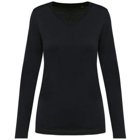 Supima® dames-T-shirt V-hals lange mouwen. Amerikaans Supima® katoen van topkwaliteit. De extra lange vezel zorgt voor stevigheid en zachtheid.