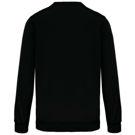 Sweater in polyester kind 100% polyester: heel sterk. Nektape op de binnenzijde van de kraag. 100% polyester. Polytricot. Contrasterende bies van ongeveer 9 cm hoog aan de voorkant. Ronde hals. Nektape op de binnenzijde van de kraag. Ribboord met elasthan aan de kraag, de mouwuiteinden en de onderkant.