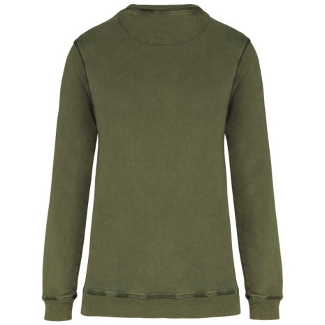 Sweater ronde hals No label: 100% personaliseerbaar naar uw merk 100% buitenkatoen: optimale bedrukkingskwaliteit Lichte stof, aangenaam om te dragen. 100% katoen. Vervaagd product. Fleece. Ingezette mouwen. Ronde hals. Straight snit. 2×2 ribboord aan halsopening, mouwuiteinden en onderkant. Overlocksteek aan de mouwinzet, de halsopening, de mouwuiteinden en onderaan. Nektape met fantasiemotief en halvemaanvormige afwerking op de achterkant. No label. Gemaakt in Portugal.