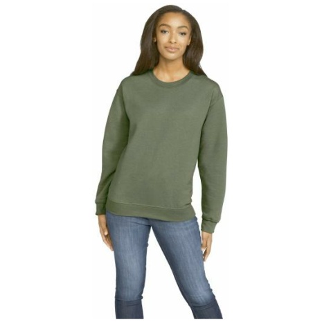 Sweater ronde hals Midweight Softstyle Klassiek en tijdloos design. Afneembaar etiket, gemakkelijk opnieuw te plaatsen. Mouwuiteinden in 1×1 ribboord. 80% katoen / 20% polyester. Comfortabele binnenkant van geborsteld fleece, ideaal om te bedrukken. Afhangende schouders. 1×1 ribboord met manchetten en binnenste band in spandex voor meer elasticiteit. Klassiek model, buisvormige body.