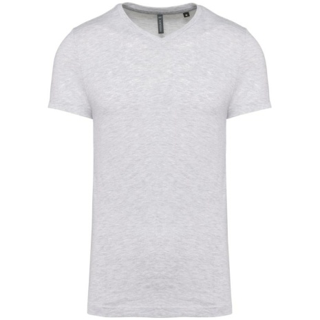 T-shirt V-hals korte mouwen Enzymgewassen en gekamd katoen: het oppervlak blijft ook na veel wasbeurten glad. Zacht en uitstekend bedrukbaar. Breed scala aan kleuren. 100% enzymbehandeld gekamd katoen. Ash Heather : 98% katoen / 2% viscose. Oxford Grey : 90% katoen / 10% viscose. Nektape (toon-op-toon voor White, Dark Grey voor Oxford Grey en Oxford Grey voor de overige kleuren). Getailleerde snit. Afwerking met dubbele stiksels.