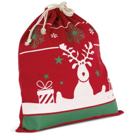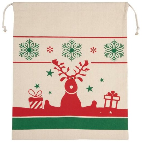 Tas met koord en kerstmotieven. Ideaal voor personalisatie.