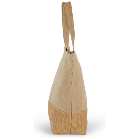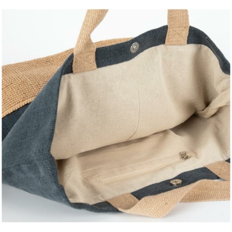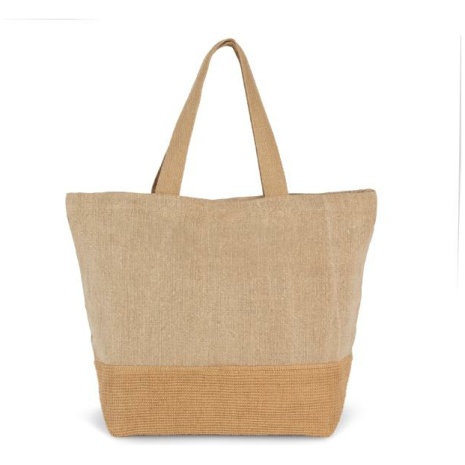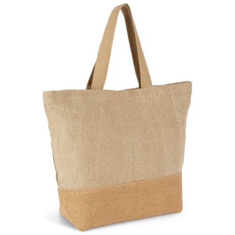 Tas van jutecanvas. Vlechtwerk voor soepelheid, zachtheid en stijl.