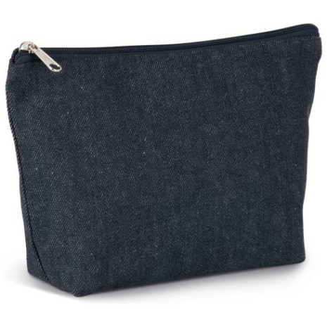 Tasje in denim Duurzaam tasje gemaakt van gerecycleerd katoen en gerecycleerd polyester. Platte bodem, handig en stabiel. Gerecycleerd materiaal, voor een mooie en stabiele denimkleur. 70 % gerecycled katoen/30 % gerecycled polyester. Tasje met platte bodem en ritssluiting. Doordat het materiaal gerecycled is, vervaagt de kleur van de stof niet.