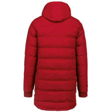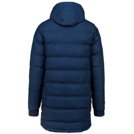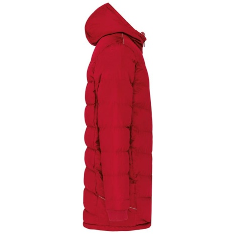 Teamsports parka PVC-coating voor een meer technische stof e waterafstotende. 2 zijzakken met rits + 1 binnenzak. Reflecterende biezen. Buitenkant: 100% polyester 200 g/m² met PVC-coating (waterafstotende). Binnenvoering 100% polyester 350 g/m². Voering 100% polyester 60 g/m². 2 ritszakken aan de zijkant. 1 binnenzak. Kraag en mouwuiteinden in ribboord. Reflecterende bies op schouders en aan de zijkant. Gevoerde capuchon. 1 rits aan de linkerkant en 1 drukkersrits.