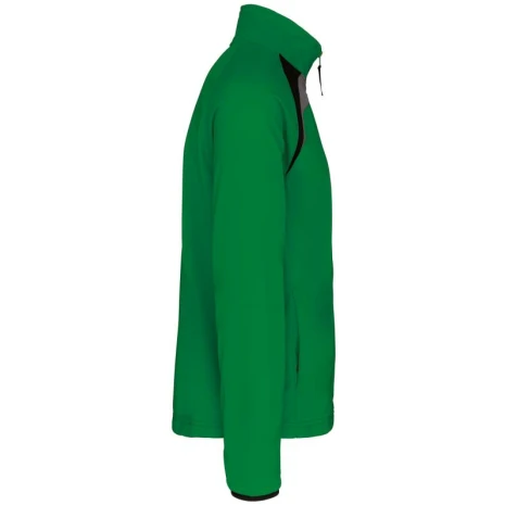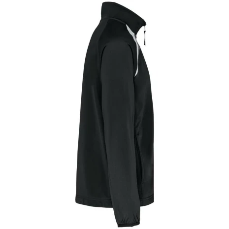 Trainingsjas 100% tricotpolyester: heel sterk. 2 zijzakken 100% gebreid polyester. Ritssluiting. Inzetstukken in contrastkleur op de borst en mouwuiteinden. 2 zakken. Elastische mouwuiteinden.