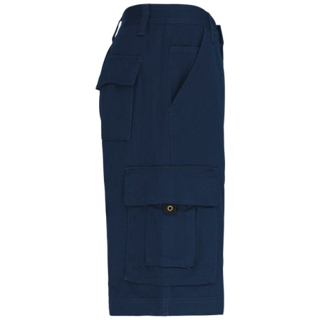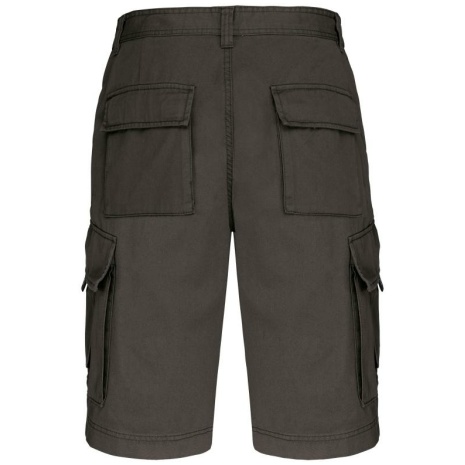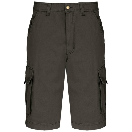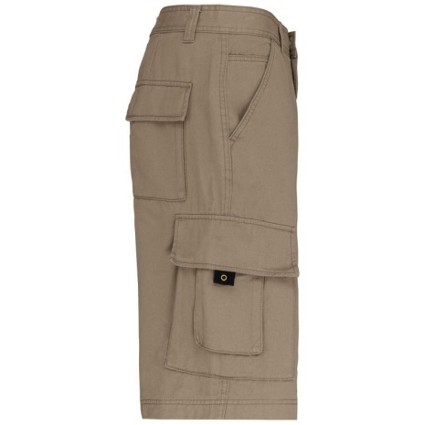 Trekker – Bermuda Twillkatoen: onderhoudsvriendelijk en duurzaam in de tijd. Comfortabel en sterk. Verouderd effect. 100 % twill katoen. 3 opgezette voorzakken. 5 zakken met overslag. 1 zakje voor gsm. Bronskleurige rits.