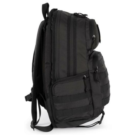 Trendy tactische rugzak MOLLEÂ Trendy rugzak met bevestigingssysteem MOLLE. Het embleem is bevestigd met klittenband, voor eenvoudige bedrukking. Veel zakjes en opbergmogelijkheden. 100% polyester. Trendy, tactische rugzak met bevestigingssysteem MOLLE. Deze trendy rugzak liet zich inspireren door zowel de militaire look als cross-training. Op de voorzak zit een groot paneel om het embleem van uw bataljon, Cross Training club of urban tribe te drukken. Voor- en zijzakken met riemen om accessoires te dragen. Vak voor een laptop/tablet van max. 15 inch op de achterkant. Groot middenvak. Vak met diefstalbeveiliging op de achterkant.