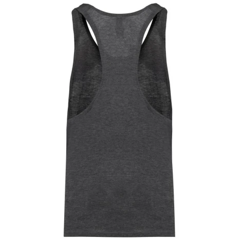 Triblend herentop. Uitgesneden rug voor meer bewegingsvrijheid.