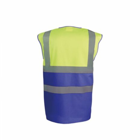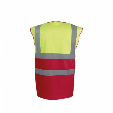 Tweekleurig signalisatiehesje Brede reflecterende stroken. Klittenbandsluiting. Voldoet aan de norm EN ISO20471:2013 100% polyester. Tweekleurig contrastgilet, gemaakt van 100% gerecycled polyester, met klittenbandsluiting; Twee 5 cm brede reflecterende strepen rond het lichaam en één op elke schouder; Geel/oranje Hi-Vis conform EN ISO20471:2013 Klasse 2; Alle andere kleuren voldoen aan EN ISO20471:2013 Klasse 1.