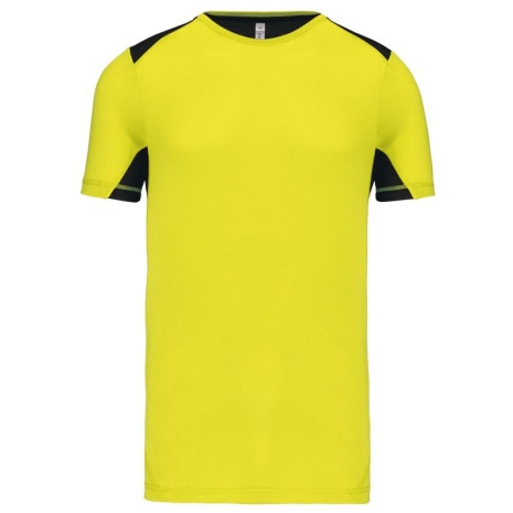 Tweekleurig sport-t-shirt Soepele stof en modellen ontwikkeld voor verschillende sporten. Inzetstukken in tricot aan de zijkant, aan de schouders en onder de mouwen voor een grote bewegingsvrijheid. 92% polyester / 8% elasthan. Inzetstukken in opengewerkt tricot van 94% polyester / 6% elasthan 180 g/m². Soepele stof en model ontwikkeld voor verschillende sporten. Inzetstukken in tricot aan de zijkant, aan de schouders en onder de mouwen voor een grote bewegingsvrijheid.