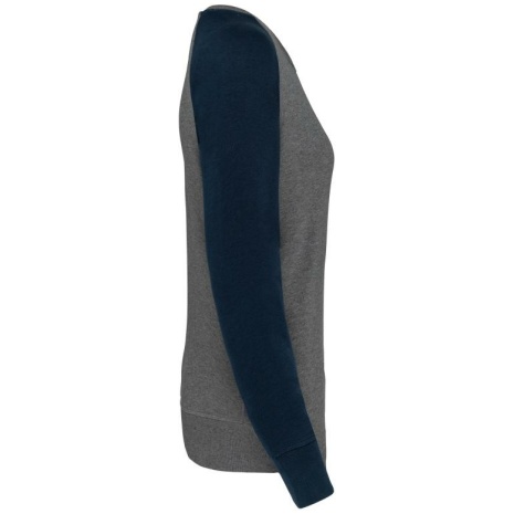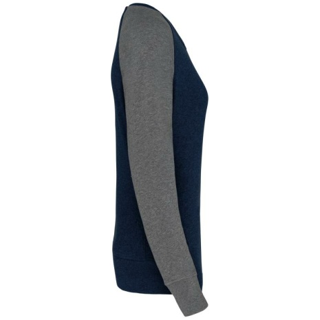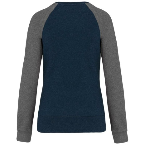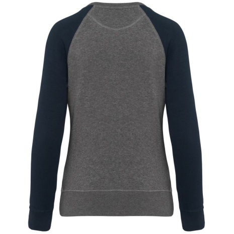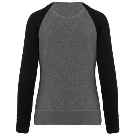 Tweekleurige damessweater French Terry BIO ronde hals raglanmouwen