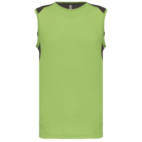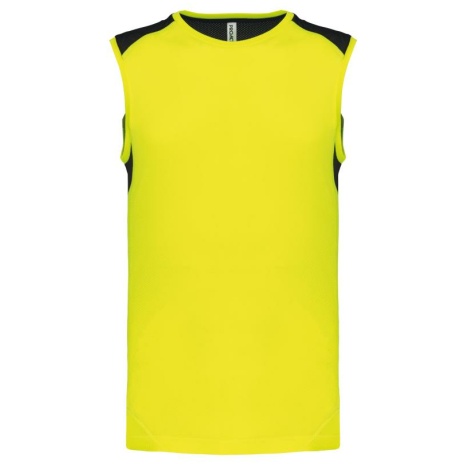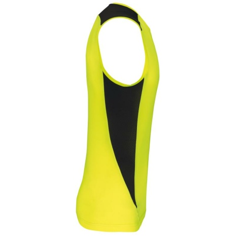 Tweekleurige sporttop Soepele stof en model ontwikkeld voor verschillende sporten Sneldrogende stof. Inzetstukken in tricot aan de zijkant en aan de schouders voor een grote bewegingsvrijheid. 92% polyester / 8% elasthan. Inzetstukken in opengewerkt tricot van 94% polyester / 6% elasthan 180 g/m². Sneldrogende stof. Soepele stof en model ontwikkeld voor verschillende sporten. Inzetstukken in tricot aan de zijkant en aan de schouders voor een grote bewegingsvrijheid.