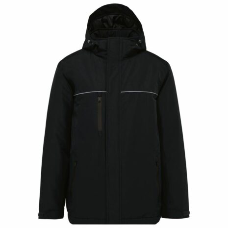 Unisex performance parka met capuchon Waterdicht en ademend. Dik en comfortabel dankzij de voering in 2 delen: gewatteerd en fleece. Stof die niet scheurt en bestand is tegen schuring. 100% polyester. Buitenkant: 100% ripstop-polyester. 2-laagse ademende stof 3000 g/m²/24 u en waterdicht 10.000 mm. Conform norm EN343:2019, klasse 3 (bescherming tegen de regen). Voering 100% polyester. Binnenvoering 100% polyester. Aan de voorkant: 2 zijzakken en 1 borstzakje met waterdichte ritssluiting in nylon. 1 binnenzak met klittenbandsluiting. Ritssluiting met stormoverslag en klittenband. Contrasterende bies op borsthoogte. Gevoerde en gewatteerde capuchon van 3 panelen, afneembaar dankzij een verstelbare rits met stoppers en klittenband. Met klittenband regelbare mouwuiteinden. Voering in 2 delen: bovendeel in fleece, onderdeel in gewatteerde stof. De boord van het kledingstuk is aanpasbaar met stoppers. Verborgen drukkersritsen aan de binnenkant: 1 links op de borst en 1 onderaan het kledingstuk. Ophanglus in de kraag. Tear-away merklabel.