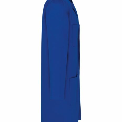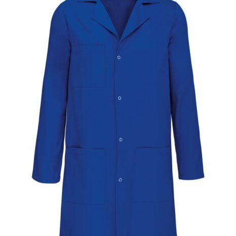 Unisex werkbloes Optimale duurzaamheid en comfort dankzij de twillstof uit 100% katoen. Wassen op 60°C, ideaal voor professioneel gebruik. Dik en sterk materiaal. 100% katoen. Twillstof. Wasbaar op 60 °C. Open kraag. Sluiting aan de voorkant met 4 drukknopen. 2 opgezette open zakken aan de voorkant + 1 open borstzak rechts opzij. Ophanglus in de kraag.