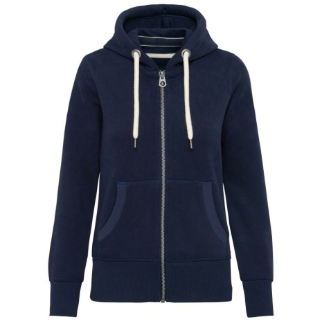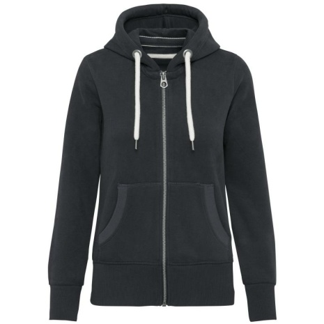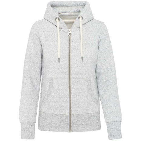 Vintage damessweater met rits en capuchon Verouderd effect voor een unieke, trendy look. Zacht en comfortabel geborsteld fleece aan de binnenkant, met fluweelachtige afwerking. Collectie Vintage. NO LABEL. 80% katoen / 20% polyester (Ash Heather: 79% katoen / 20% polyester / 1% viscose). Geborsteld fleece aan de binnenkant. Fluweelachtig met vintage look. Metalen ritssluiting. Gevoerde capuchon. Rond en contrasterend capuchonkoordje. Dubbel nektape met visgraatmotief. Kangoeroezakken. Ribboord aan de mouwuiteinden en de onderkant. Dit product kreeg een speciale behandeling om het er verouderd te laten uitzien. Dit ambachtelijke procedé maakt dat er kleurverschillen zijn tussen de producten, waardoor elk stuk uniek is. Geen merklabel, maar enkel een maataanduiding voor eenvoudige personalisatie.