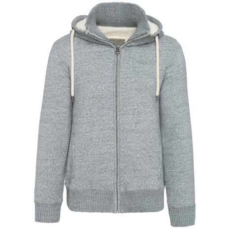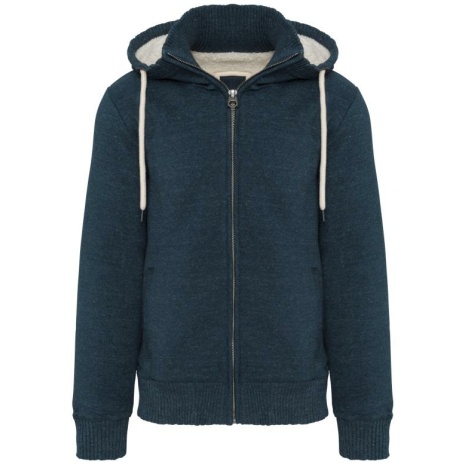 Vintage fleecejas met sherpavoering Opzettelijk verouderd effect voor een unieke, trendy look. Heel warm en comfortabel, met een voering van sherpa. Collectie Vintage. NO LABEL. 80% katoen / 20% polyester. Volledig gevoerd met sherpa van 100% polyester. 2 omzoomde zakken aan de voorkant. Metalen ritssluiting. 4×4 ribboord aan de kraag, rond de capuchon, aan de mouwuiteinden en onderaan het kledingstuk. Blinde drukkersrits aan de linkerkant vooraan en de linkernaad.
