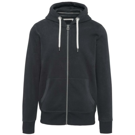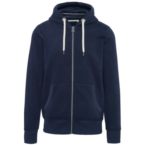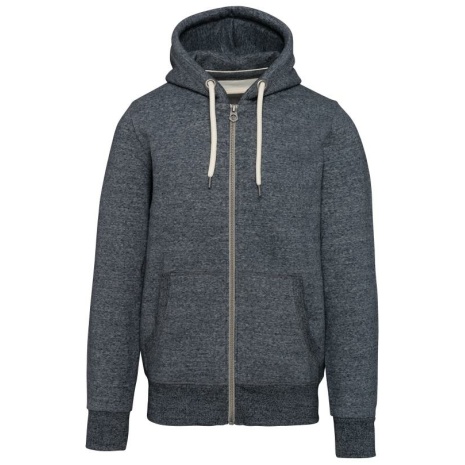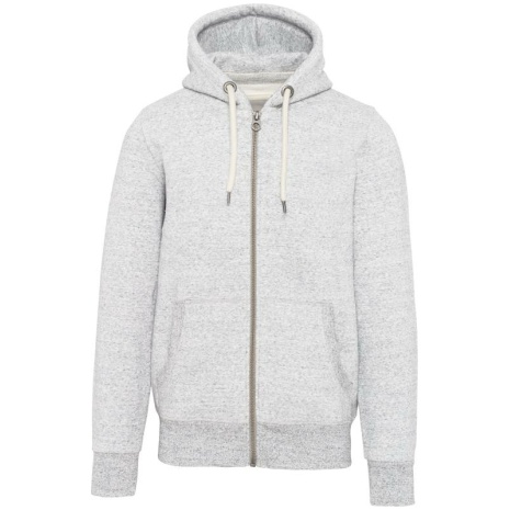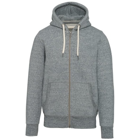 Vintage herensweater met rits en capuchon Verouderd effect voor een unieke, trendy look. Zacht en comfortabel geborsteld fleece aan de binnenkant, met fluweelachtige afwerking. Collectie Vintage. NO LABEL. 80% katoen / 20% polyester (Ash Heather: 79% katoen / 20% polyester / 1% viscose). Geborsteld fleece aan de binnenkant. Fluweelachtig met vintage look. Metalen ritssluiting. Gevoerde capuchon. Rond en contrasterend capuchonkoordje. Dubbel nektape met visgraatmotief. Kangoeroezakken. Ribboord aan de mouwuiteinden en de onderkant. Geen merklabel, maar enkel een maataanduiding voor eenvoudige personalisatie. Dit product kreeg een speciale behandeling om het er verouderd te laten uitzien. Dit ambachtelijke procedé maakt dat er kleurverschillen zijn tussen de producten, waardoor elk stuk uniek is.