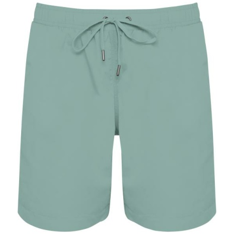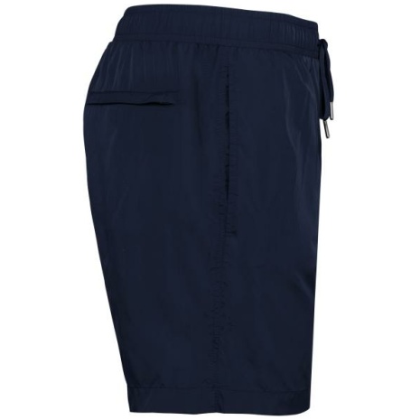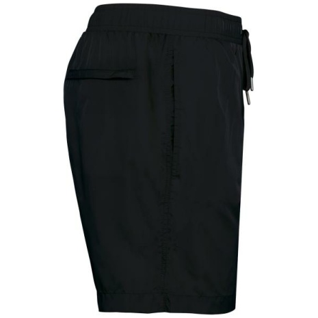 Zwemshort voor heren Lichte stof die snel droogt. Achterzak met rits. 100% polyamide. Straight snit. 2 zijzakken met meshzak. Versteviging aan de zakken, in het kruis, onderaan de broekspijp en op de achterkant van de tailleband. Elastische tailleband met plat aanrijgkoordje met metalen uiteinden. Binnenslip in mesh, afgewerkt met een elastisch biesje voor meer comfort. Omzoomde achterzak met nylon rits. Dubbel stiksel in het kruis en opzij. Geen merklabel in de tailleband, maar enkel een maatlabel voor eenvoudige personalisatie.