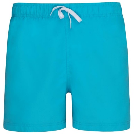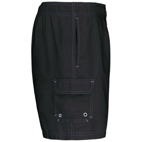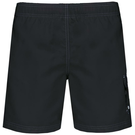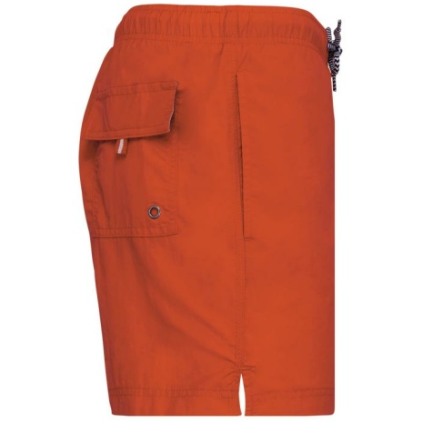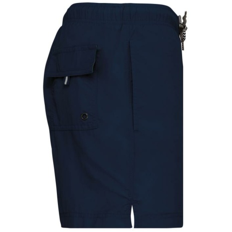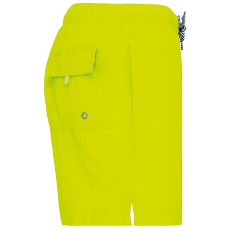 Zwemshort 100% polyester : heel sterk. Fluweelachtig gevoel. Blijft goed zitten dankzij de elastische tailleband met aanrijgkoordjes. 100% polyester microvezel. Voelt aan als perzikhuid. Sneldrogend. Elastische tailleband met aanrijgkoord aan de binnenkant. Geïntegreerde slip van mesh. 2 zijzakken en 1 zak met overslag en eyelet. Gecontrasteerde overstiksels.